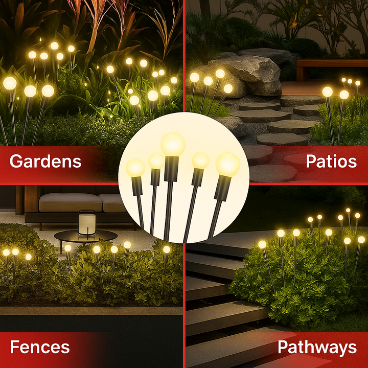 Add a touch of enchantment to your outdoor space with realistic firefly-style lights that sway gently in the breeze — solar-powered, waterproof, and effortless to install.