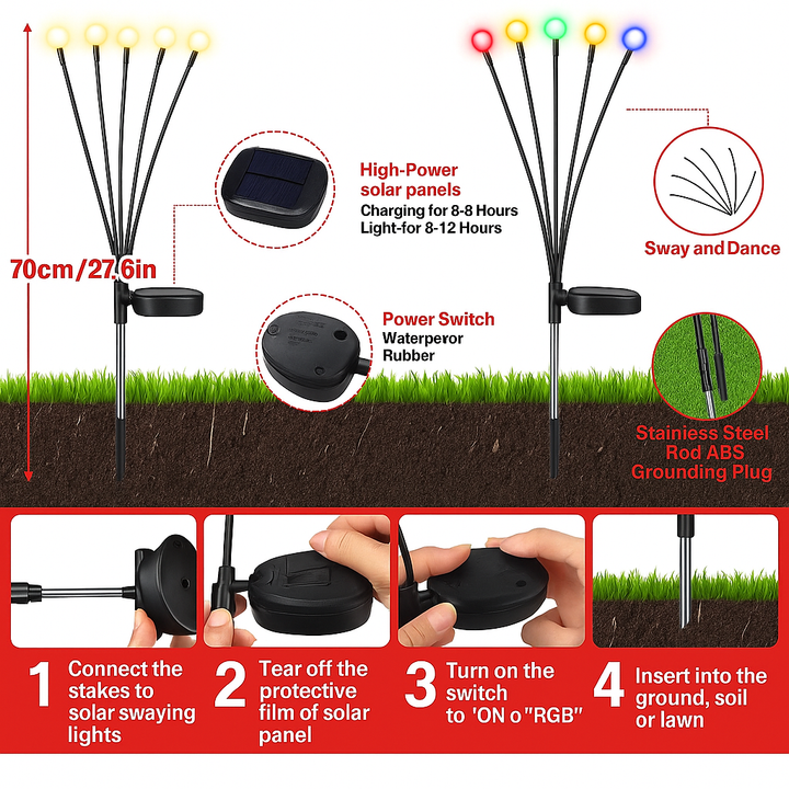 - ✅ Easy Setup – Just stake into the ground, turn on, and enjoy an enchanting glow