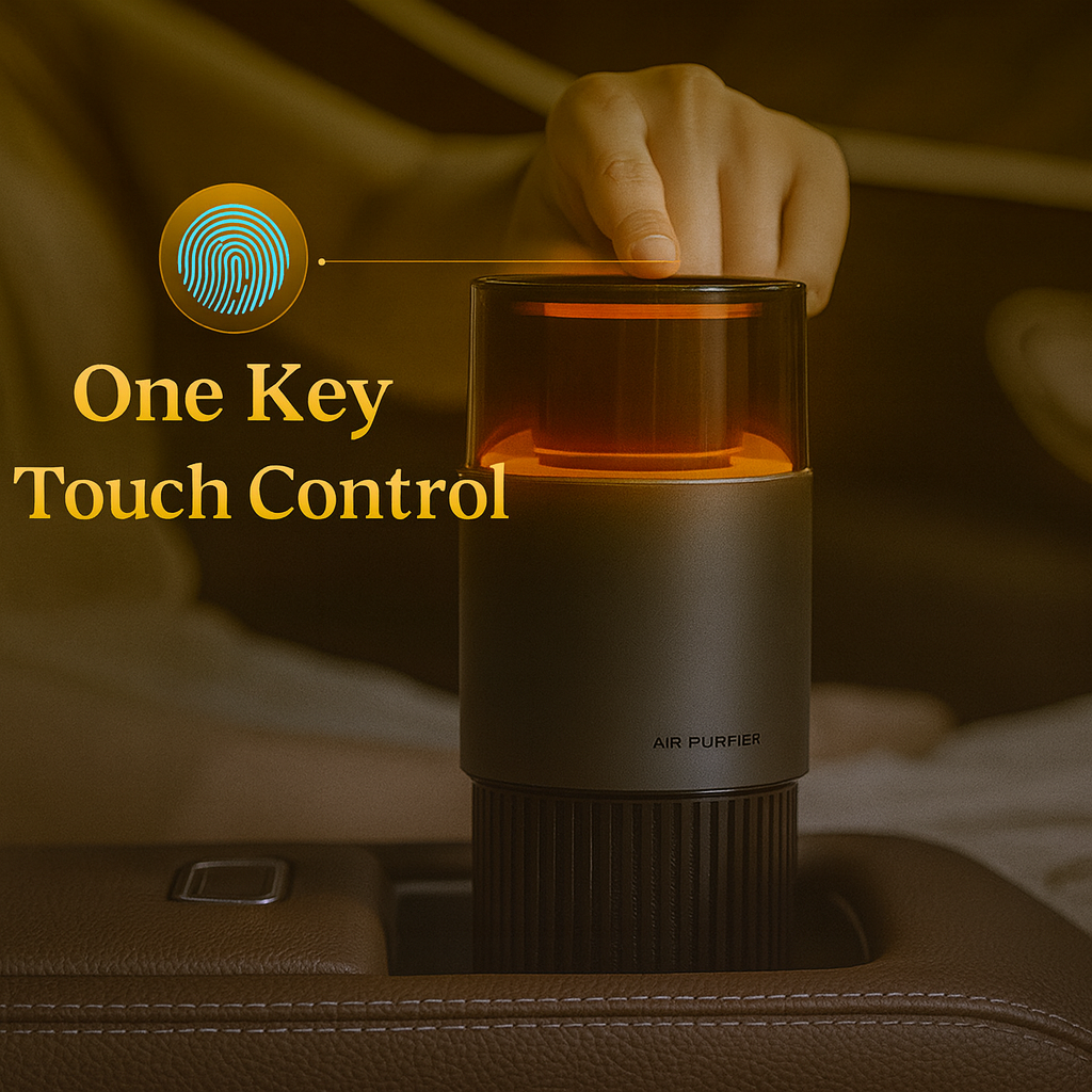 360° cabin purification powered by HEPA nano-filter and negative ion technology. Traps dust, smoke, and pollen while neutralizing odors — whisper-quiet and cup-holder friendly. A must-have for every car interior.