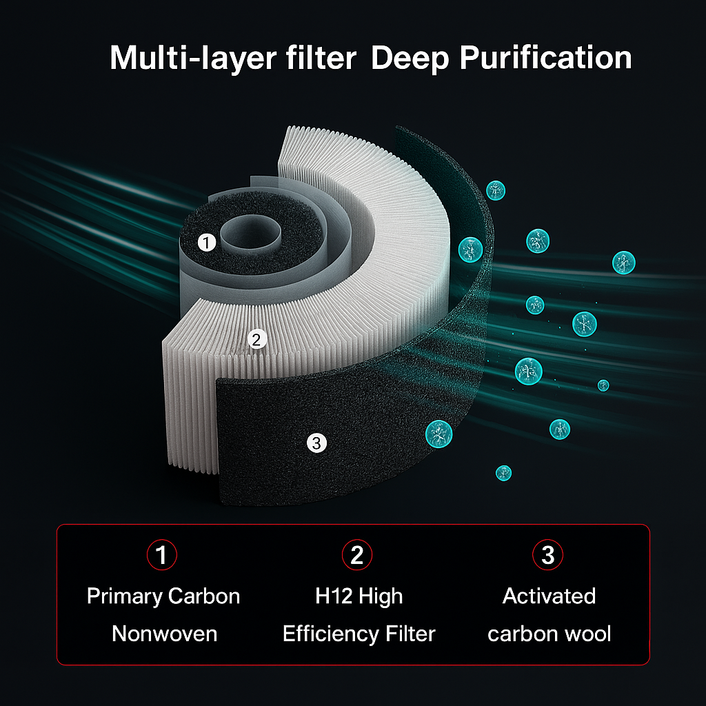 - ✅ HEPA Nano-Filter – Traps dust, smoke, pollen, and PM2.5 particles with hospital-grade precision