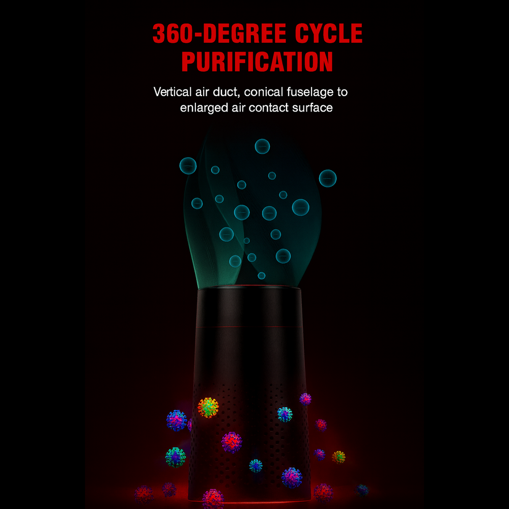 - ✅ 360° Cycle Purification – Vertical air duct with conical fuselage maximizes air contact for faster, deeper cleaning
