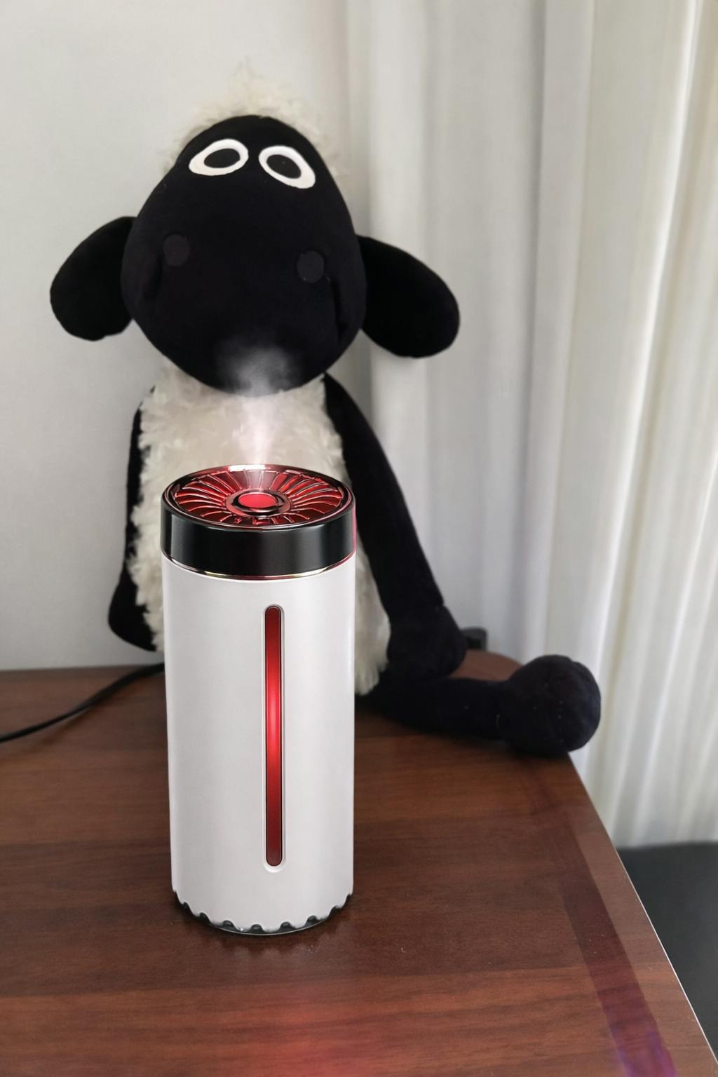 - Press button → 360° purification + aroma.